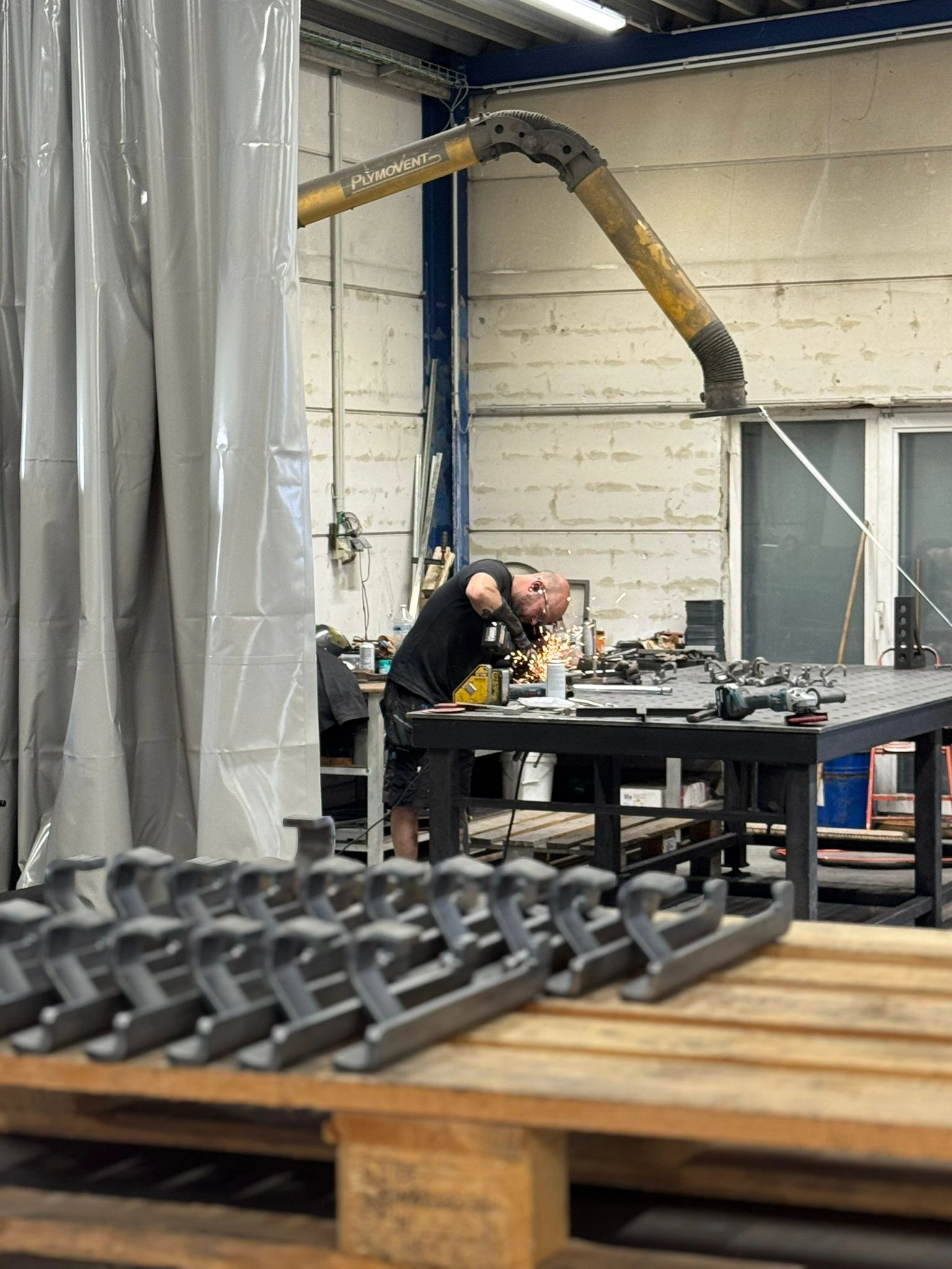 Wij maken frames volledig op maat, afgestemd op de wensen van de klant. Van het ontwerp en de tekening tot het snijden, lassen en uiteindelijk poederlakken, zorgen we voor een hoogwaardige afwerking die zowel technisch als visueel voldoet aan de hoogste eisen.