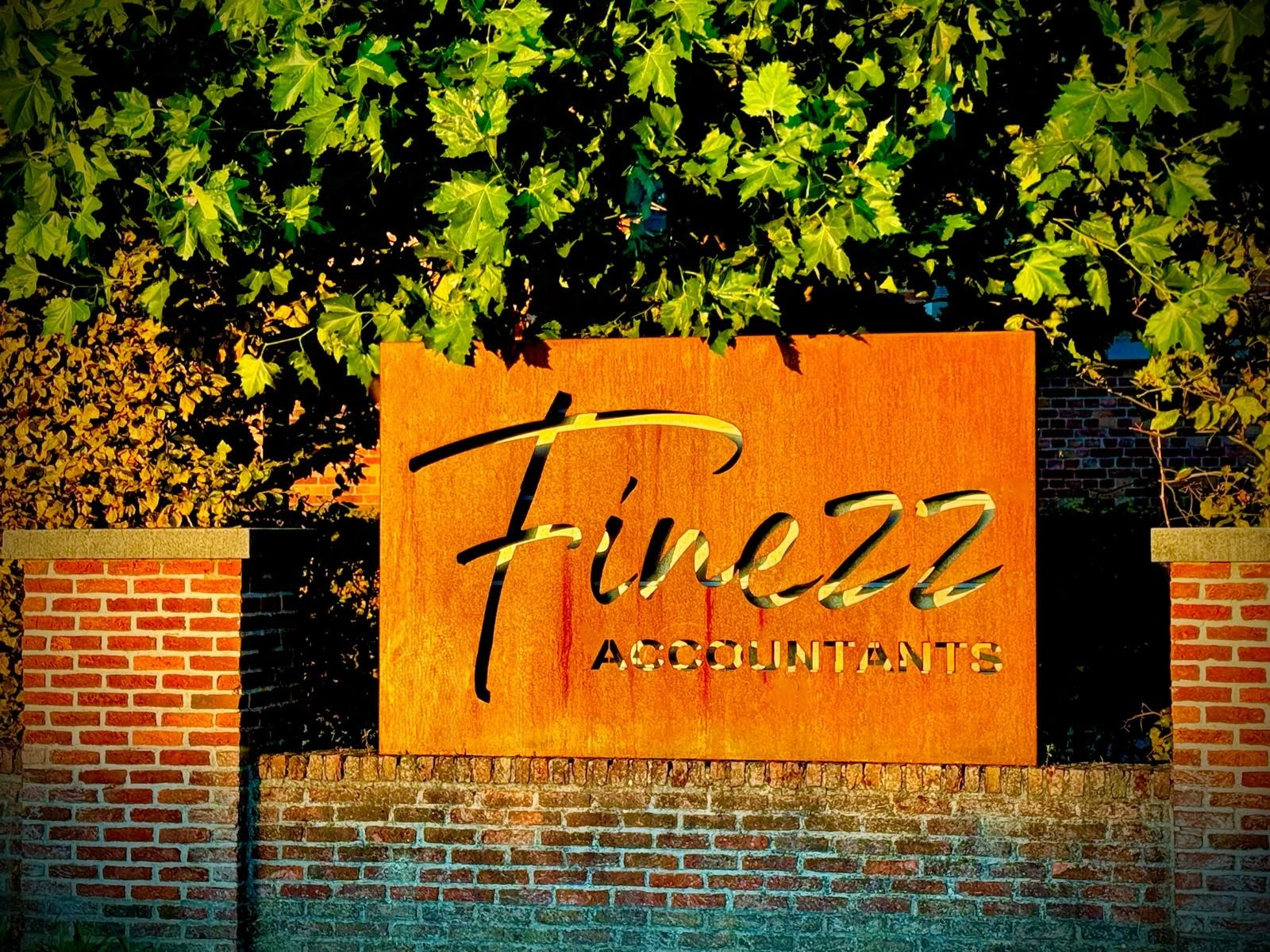 Een sterk statement in cortenstaal – dit reclamebord geeft een moderne, robuuste uitstraling aan het accountantskantoor en benadrukt de waarden van betrouwbaarheid en deskundigheid.